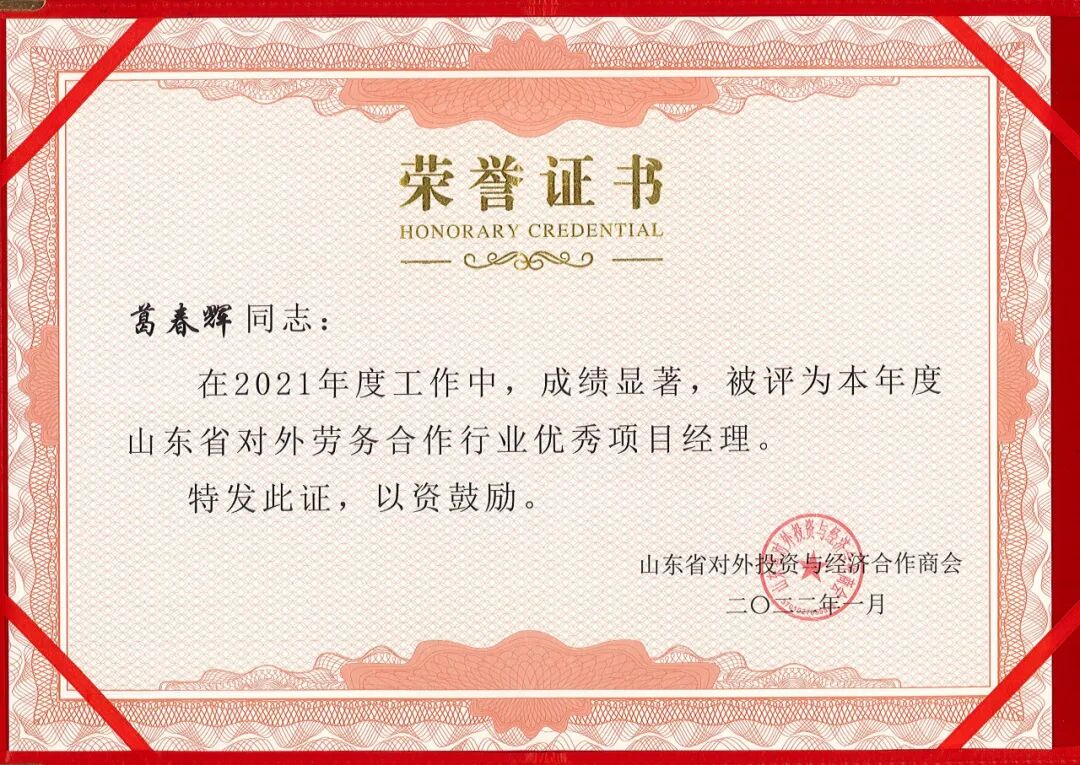 同时,青岛辛迪加国际总经理葛春辉在此次评选活动还被评为"",可谓是双喜临门,可喜可贺!